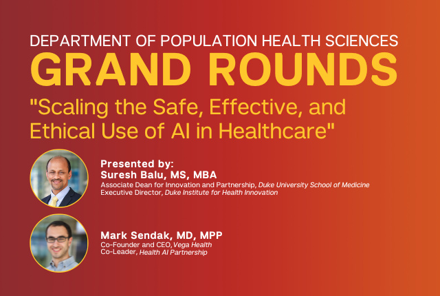 Presented by Dr. Suresh Balu, Associate Dean for Innovation and Partnership at the Duke University School of Medicine and Executive Director of the Duke Institute for Health Innovation, and Dr. Mark Sendak, Co-Founder and CEO of Vega Health and Co-Leader of the Health AI Partnership