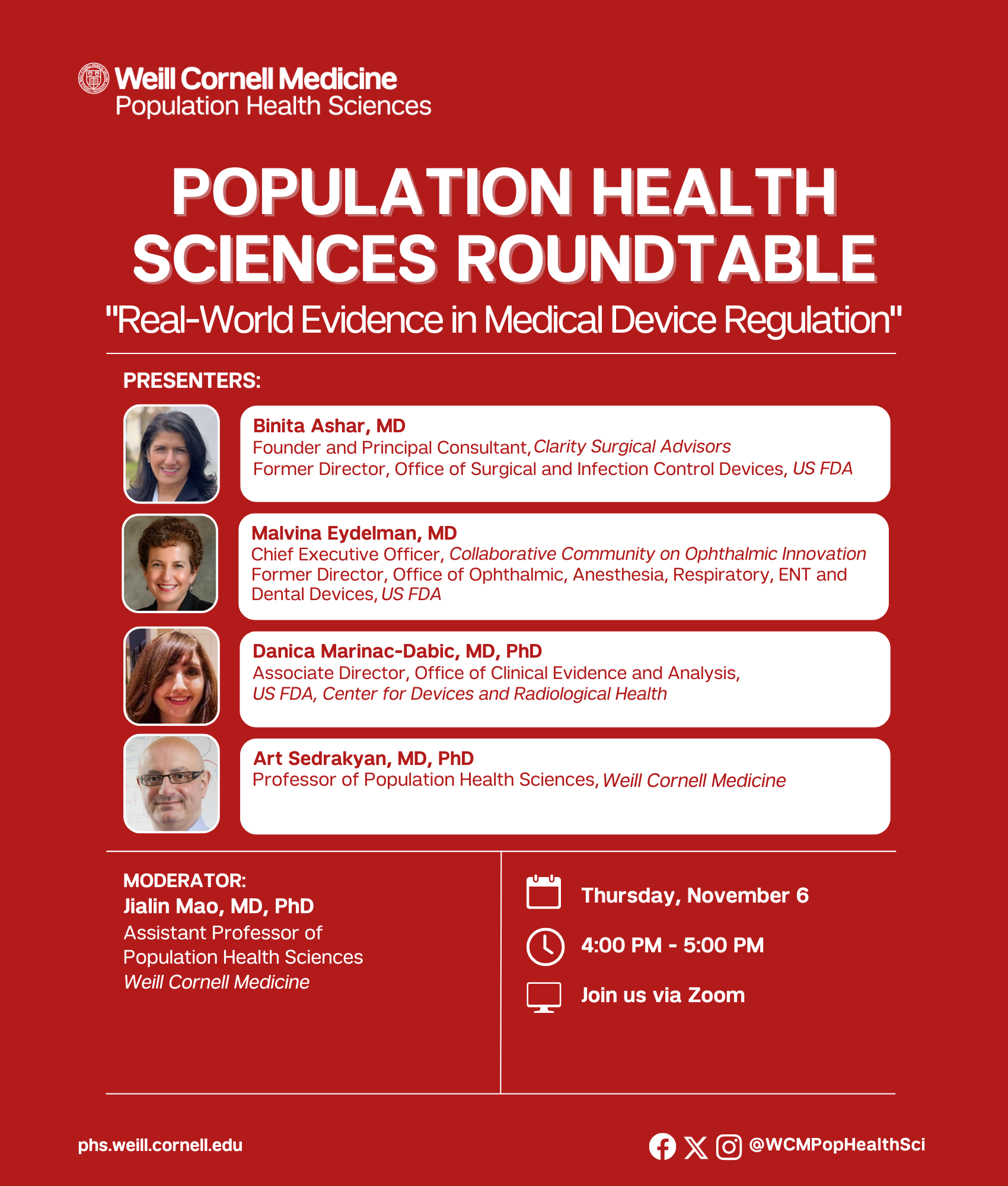 Moderated by: Dr. Jialin Mao, Assistant Professor of Population Health Sciences at Weill Cornell Medicine